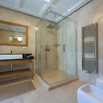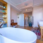Les équipements de salle de bains comprennent les toilettes séparées, la baignoire et la douche, ainsi que le sèche-cheveux et les serviettes.